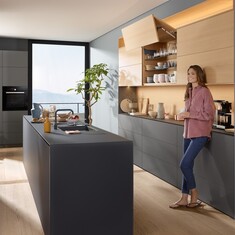 Handle-less doors open at a single touch with TIP-ON, giving users easy access to the opening edge of fronts.