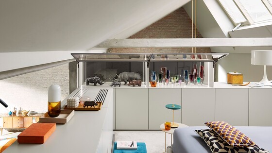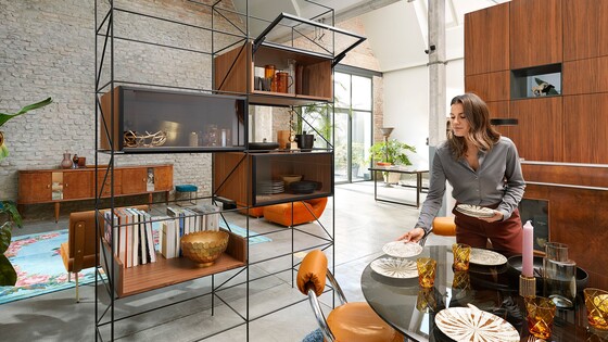 Sometimes you have to take something away, to gain something else; sometimes less is more. For AVENTOS HKi, it's about 750 cm³ – a well-filled glass of sawdust – that is used for the hinge in the cabinet side. The gain is immense creative freedom to realise new furniture designs with stay lifts fully integrated into the side panel.