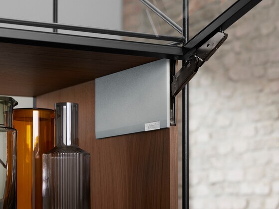 The BLUMOTION soft-close mechanism ensures that the integrated lift system always closes softly and effortlessly. For handle-less applications, our narrowest lift system can also be implemented with TIP-ON motion technology.