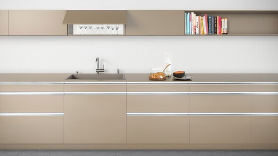 Wall cabinets and pull-outs open at a single touch. They have a free running action throughout.