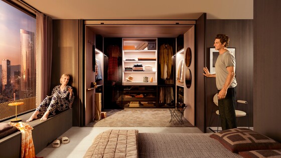 The new product category called pocket systems opens up completely new opportunities for creating multifunctional space: REVEGO, the unique slide-in door system with fully integrated technology, allows you to open up entire living areas when you need them and conceal them again when they are not in use. No matter whether single or double door application, the full overlay fronts disappear into a dedicated narrow cabinet, the pocket.