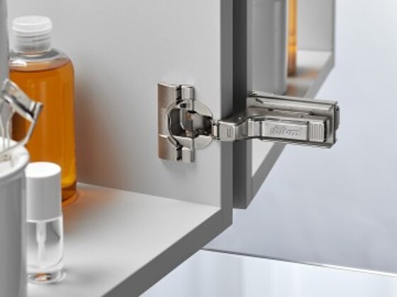 Dobradiças para armários espelhados de banheiros com frentes salientes em toda a volta