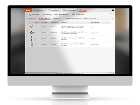 Die kontinuierlichen Aufwände beim Erfassen und Pflegen der Blum-Produktdaten sowie der programmatischen Einbindung lassen sich durch diesen Produktdaten-Service auf Dauer deutlich reduzieren.