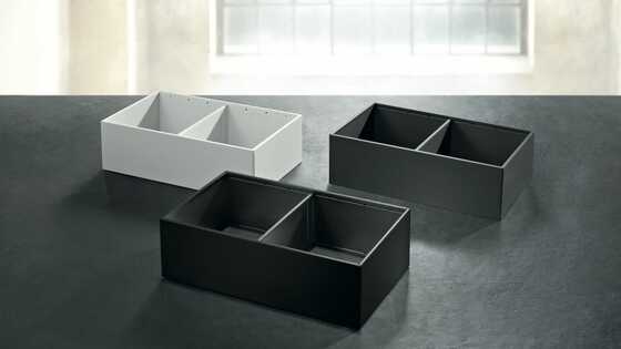 AMBIA-LINE’s narrow frame design harmoniously matches LEGRABOX pure and free pull-outs in colour, material and style, and can set accents in furniture interiors.