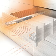 For drawers and pull-outs that not only close silently but can also be opened with just a light touch, TIP-ON BLUMOTION is ideally suited for this. With an addition of the opening support system, the BLUMOTION S runner transforms from a BLUMOTION runner to a TIP-ON BLUMOTION runner. Thanks to the unique intelligent product design, the dampening path adjusts automatically.