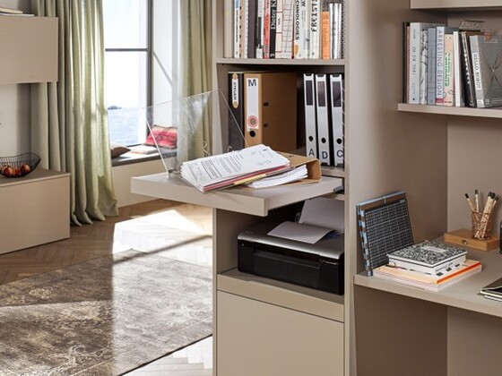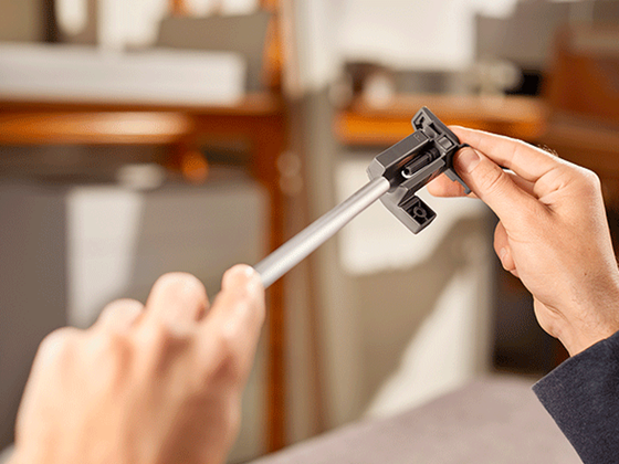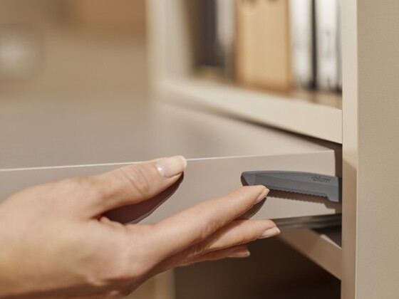 Wohnqualität wird nicht nur durch Design bestimmt, sondern auch durch Komfort. Darum haben wir für Tablare mit MOVENTO und TANDEM eine praktische Arretierung entwickelt. Dezent und platzsparend hält sie das Tablar sicher in ausgezogener Position.