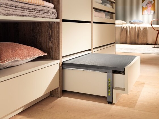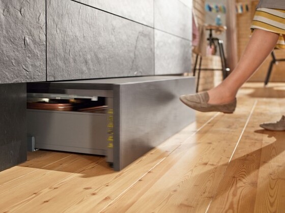 Von Backzubehör bis zu Schuhen – SPACE STEP bringt Funktionen in den Sockel, ob in Küche, Bad oder Diele. Verarbeiten Sie die clevere Sockellösung mit den Blum-Produkten, die Sie gewohnt sind: mit allen Führungen und Boxsystemen aus unserem Programm.
