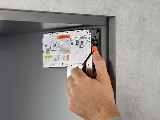 Vous réglez le réservoir de force à l’avant en tout confort, même avec un cache monté. Ainsi la porte relevable s’arrête dans la position souhaitée.