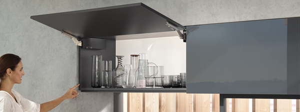 Todos os sistemas de portas de elevação Blum para armário superior e alto em visão geral.