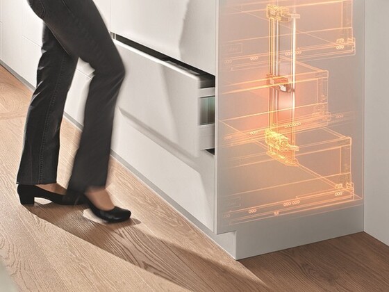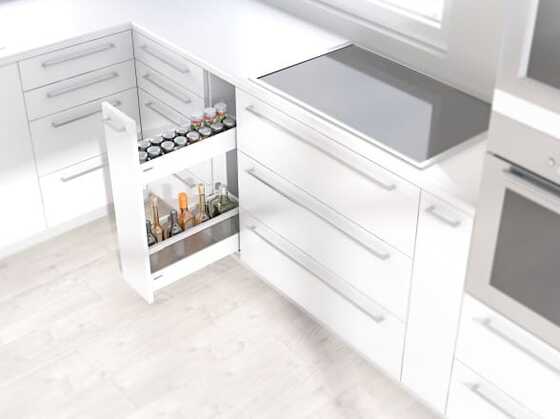 A ideia da Blum para armários estreitos oferece uma possibilidade simples de utilizar também os menores espaços disponíveis.