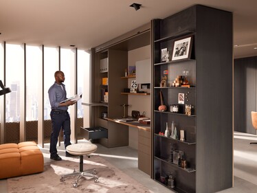 Com REVEGO, portas desaparecem dentro do móvel, revelando ou ocultando ambientes conforme a necessidade.