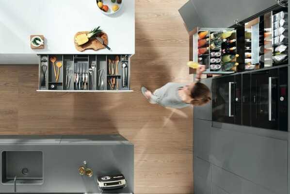 O sistema de divisões internas de alta qualidade proporciona uma organização inspiradora em cada gaveta ou extensão frontal. Sejam talheres de mesa, frascos ou panelas – todos os itens podem ser acondicionados de forma confortável e segura. Crie seu espaço disponível de acordo com as necessidades e visivelmente organizado.