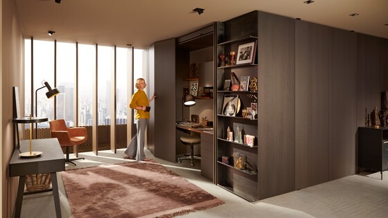 REVEGO est un système de portes coulissantes, conçu avec expertise et doté d'une technologie entièrement intégrée dans une armoire étroite appelée "la Pocket". Que ce soit pour des configurations à porte simple ou double, REVEGO vous permet d'ouvrir et fermer facilement des pièces entières, créant ainsi un environnement domestique dynamique et flexible.