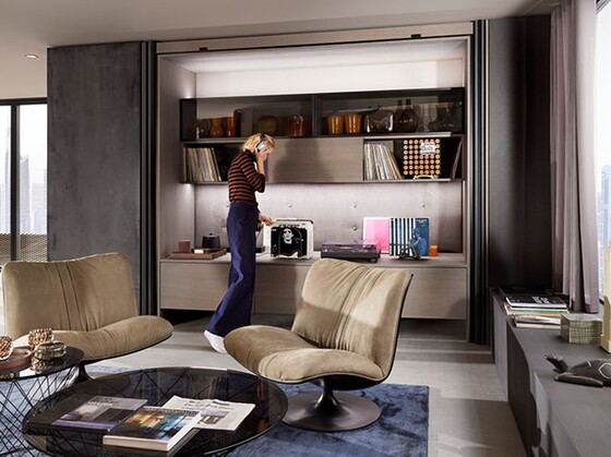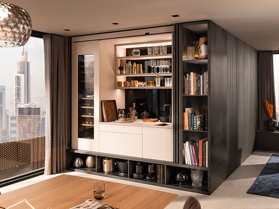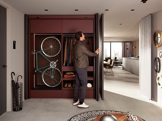 La nouvelle catégorie de produits « Systèmes Pocket » vous ouvre de toutes nouvelles perspectives pour une utilisation multifonctionnelle de l'espace : grâce à REVEGO, le système unique de porte coulissante avec technique entièrement intégrée, vous ouvrez des espaces de vie complets lorsqu’ils sont utilisés, puis vous les dissimulez à nouveau. Qu’il s’agisse d’application porte simple ou porte double, les faces en applique totale disparaissent dans un corps de meuble étroit spécialement dédié, la Pocket.
