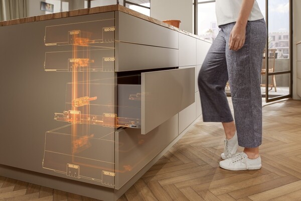 Per integrare SERVO-DRIVE non è necessario apportare alcuna modifica al sistema di estrazione. Rimangono garantite anche la corsa a levitazione delle diverse guide e il funzionamento impeccabile di BLUMOTION.
