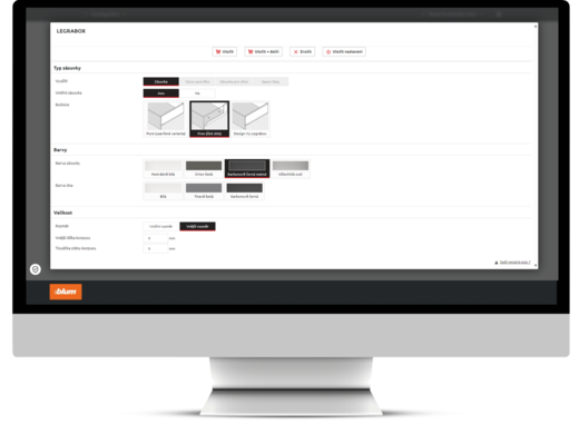 Poznejte novou službu Blum, díky které pomocí speciálního online konfigurátoru navrhnete a objednáte předem smontované zásuvky. Služba zahrnuje všechny typy Box systemů v jakékoli výšce a hloubce a možnost výběru šířky s přesností na 1 mm. Dodání ve stanovený den na uvedenou adresu. Objednávka již od jednoho kusu.
