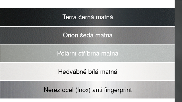 Speciální kolekce: neobvyklý vzhled bočnic vychází z nové karbonově černé matné barvy a také z kombinace materiálů s ušlechtilou nerez ocelí anti fingerprint, 3D ražením v provedení Carbon look nebo strukturovaným provedením v ušlechtilé rzi.