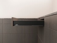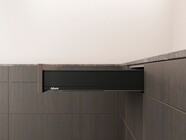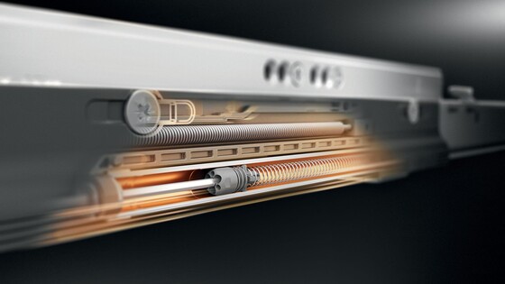 Korpusová lišta LEGRABOX přesvědčí snadným otvíráním již od prvního milimetru. Synchronizace zásuvkové lišty a vozíku umožňuje hladký chod pojezdů s třídou nosnosti 40 kg a 70 kg.