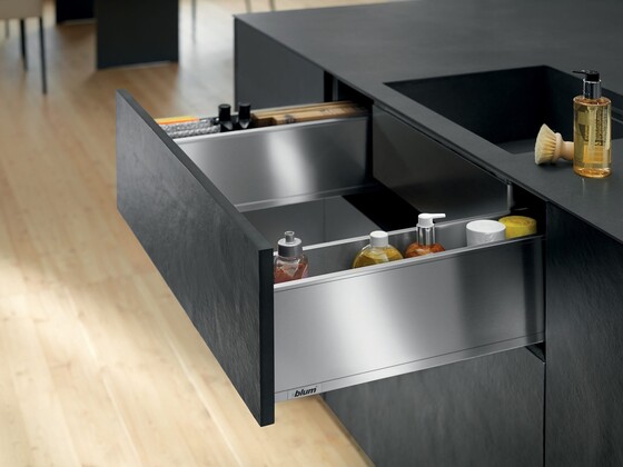 AMBIA-LINE vnáší do zásuvek perfektní pořádek. Systém vnitřního členění s elegantním štíhlým designem rámečků je speciálně přizpůsoben pro LEGRABOX a nabízí široké možnosti uspořádání vnitřního prostoru nábytku.