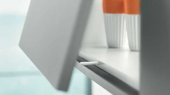 Prostými změnami pozic standardních kování může být AVENTOS HK zpracován také pro využití na pokos s polodrážkou.