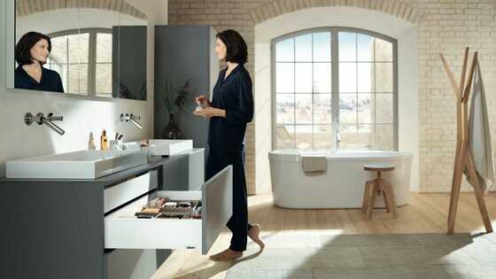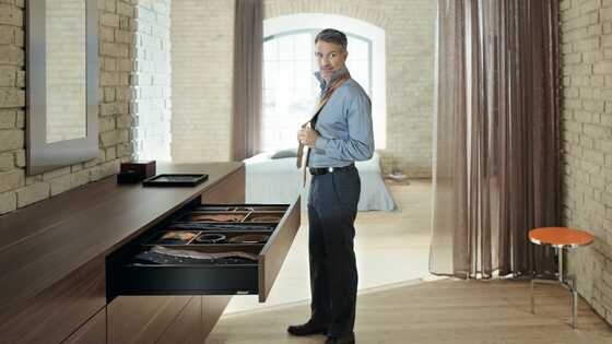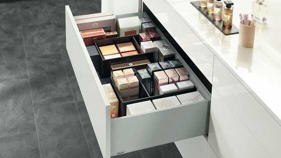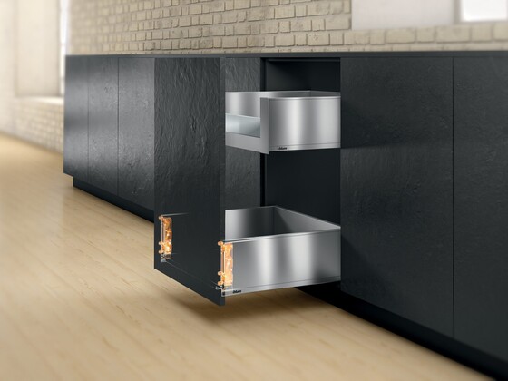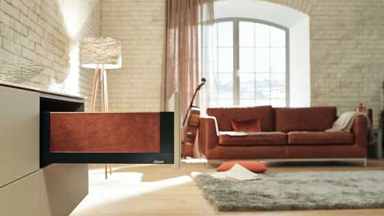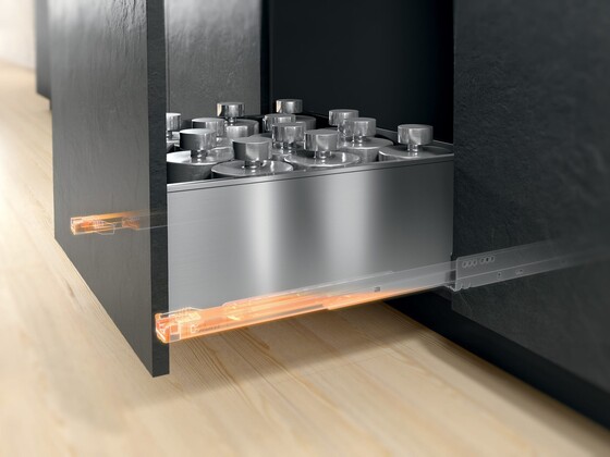 Die innen wie außen geraden, mit 12,8 mm beeindruckend schlanken Seitenwände fügen sich harmonisch in jedes Möbel ein. Die einzelnen Komponenten sind optimal aufeinander abgestimmt und bilden harmonische Übergänge.