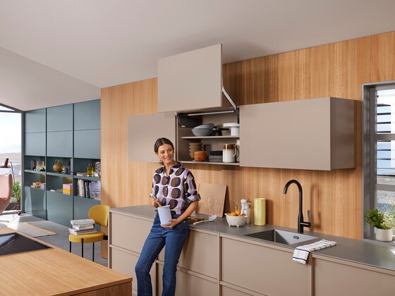 Med AVENTOS HF top, beslaget til foldelåger, kan store klaplåger med todelt front realiseres.