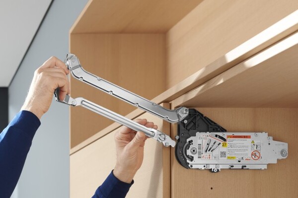 Den værktøjsløse tværstabillisering til AVENTOS HS, gør anstrengelserne ved montagen betydeligt mindre.