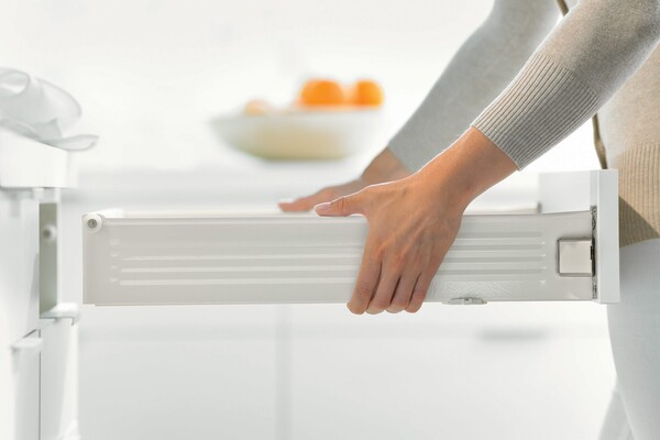 Soft-close BLUMOTION is activated by the latch on the base of the drawer.
