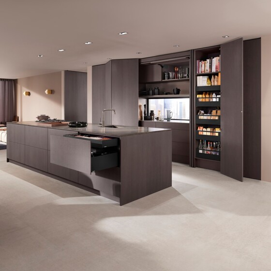 Pull-outs open at a single touch, giving users easy access to the opening edge of fronts. They can also be pulled open.