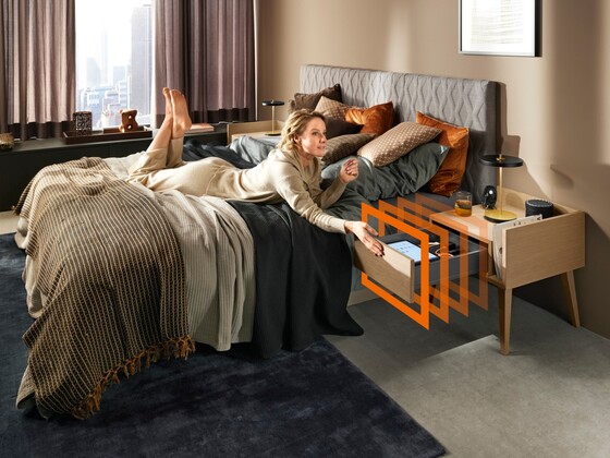 AMPEROS AC is compatible with MOVENTO and LEGRABOX and is easy to install or retrofit. An ideal solution for kitchens, bathrooms or living rooms.