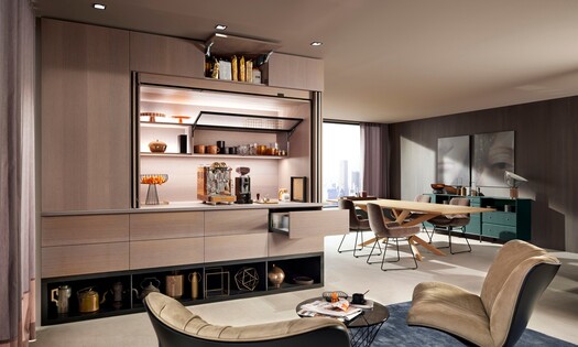 Le clou du spectacle : des idées de meubles intégrant REVEGO. Un linéaire de cuisine qui occupe toute la hauteur de la pièce, un coin bar élégant ou un meuble bas monté sur plan de travail dédié au café, nous souhaitons montrer comment REVEGO répond aux tendances de l’aménagement des intérieurs. Les applications exposées pourront être utilisées de manière créative pour toutes sortes de projets.