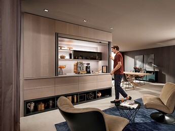 La fonction éprouvée BLUMOTION peut être utilisée pour la sortie partielle METABOX. Pour que le tiroir et le bloc-tiroir ferment toujours en douceur et en silence. Indépendamment de l’élan donné et du poids des contenus. Particulièrement pratique et économique : une seule unité BLUMOTION suffit jusqu'à une largeur de corps de meuble de 900 mm.