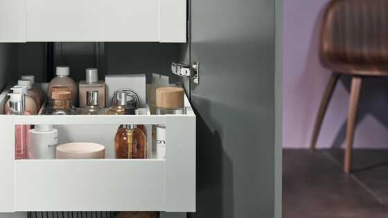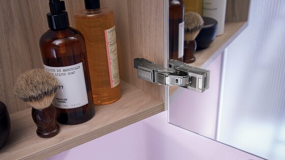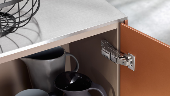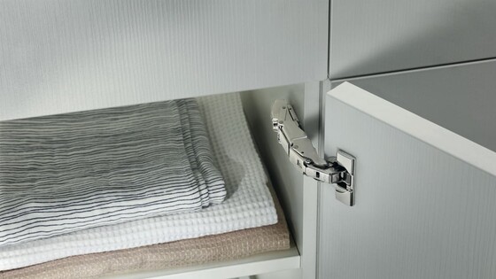 Crammed full of functionality. The new wide angle 0-protrusion hinge has been designed so that soft-close BLUMOTION can be integrated in the hinge without changing its dimensions.