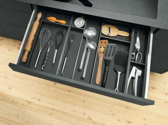 AMBIA-LINE and ORGA-LINE beautifully organise drawers and pull-outs. They hold items securely and give you clear visibility of contents.