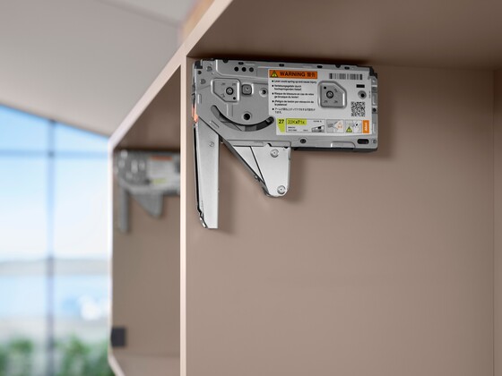 AVENTOS HK top boasts many integrated features (such as a safety mechanism and opening angle stop) which greatly facilitate assembly and installation. What's more, even large and heavy wall cabinet fronts open and close with ultimate ease.