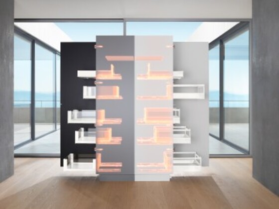 Ezáltal minden SPACE TOWER elbűvöl mint praktikus megoldás és egyben hasznos kialakítási tippekkel szolgál. Azok a fiókok, melyek a korpuszban rugalmasan helyezkednek el és egyénileg alakíthatók a különböző élelmiszerek tárolásához, plusz kialakítási lehetőséget kínálnak. A megmunkálásnál nincs szükség a fenéklapok és hátfalak egyedi szabására.