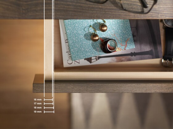 Alakítsa rugalmasan a kihúzókat a TANDEM vezetősínnel! A jó helykihasználáshoz és könnyű hozzáféréshez a teljes kihúzás a megfelelő választás. Kis bútoroknál, például éjjeli szekrény esetében különösen alkalmas a részleges kihúzású TANDEM.