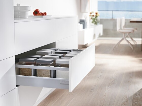 The minimalist design of TANDEMBOX antaro is based on clean lines and a sleek colour scheme. All nylon components are colour coordinated with the drawer sides. The colour range includes three options in steel: silk white, white aluminium and orion grey.