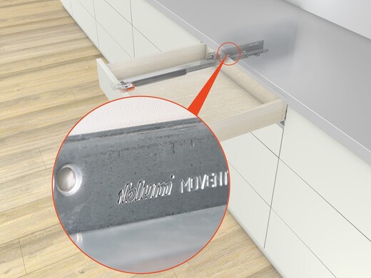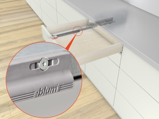 This concealed runner system for wooden drawers and pull-outs captivates with its extraordinary quality of motion – from opening to closing. Even heavily laden pull-out systems have a feather-light glide and extremely good sag values.