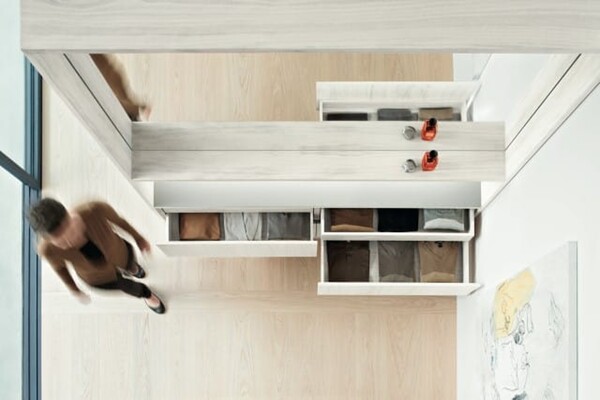 This concealed runner system for wooden drawers impresses with its feather-light glide and brings enhanced user convenience to the entire home. Drawers can be equipped with a locking device or hook and peg feature.