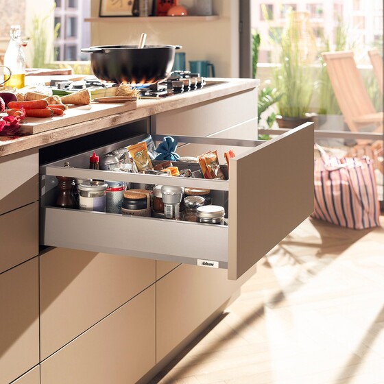 Handle-less doors open at a single touch with TIP-ON, giving users easy access to the opening edge of fronts.