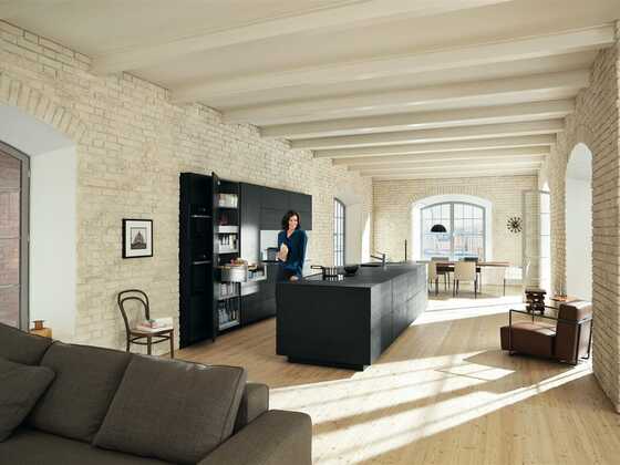 With AVENTOS HF top, the fitting for bi-fold lift systems, large lift systems with a bi-fold fronts are possible.