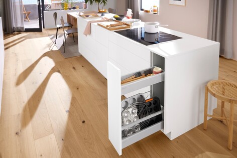 Blum enables you to design exceptional drawers and helps you organise their interiors. The ORGA-LINE inner dividing system from Blum securely holds items within the drawer interiors while ensuring everything is in plain sight and within arm’s reach.