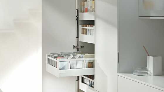 Use Blum SPACE TOWER to maximise and optimise storage in all living spaces, even the smaller ones. The larder unit offers ultimate design freedom to create a storage unit suitable for all kinds of rooms, whether big or small.
