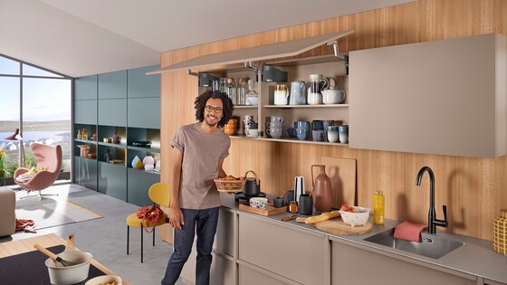 AVENTOS lift systems transform the way you interact with wall cabinets. The mechanisms move doors up and away, making it easy for users to move around freely and reach inside the wall cabinets without trouble. Choose from bi-fold, up and over, lift up, or stay lift opening styles. Upgrade wall cabinets for comfort and style. Elevate your quality of living.