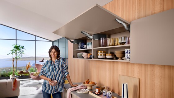 AVENTOS top lift systems use spring mechanisms to make wall cabinets work like a charm for years. Tested for 80,000 opening and closing cycles, these lift systems effortlessly withstand everyday use. Overall, AVENTOS top ensures quality wall cabinets for the lifetime of the furniture.