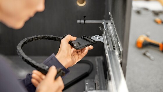 You don't need any tools to fit the cable routing – it is simply attached to the TIP-ON BLUMOTION interface.
