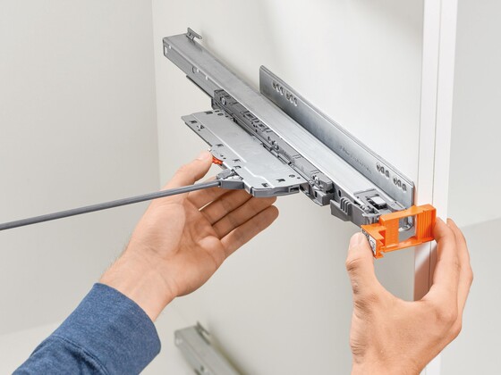 The synchronisation feature enlarges the trigger range and improves the TIP-ON BLUMOTION function. Two synchronisation options are available for different internal cabinet widths. Both can be mounted without tools.