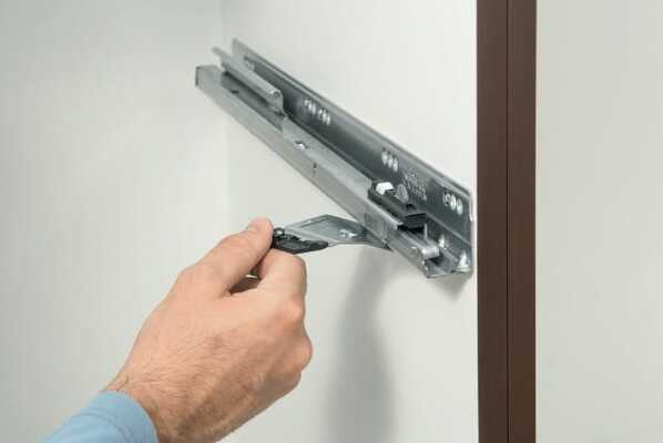 Like most components, the TIP-ON BLUMOTION unit is assembled without tools.