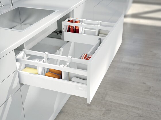 引出内部を美しく整理整頓します。カトラリーやボトルまたは鍋 - あらゆる収納アイテムを安全に、しかも快適に収納することができます。パーティションシステム ORGA-LINE を使って、収納スペースを必要に合わせて見やすく構成してください。